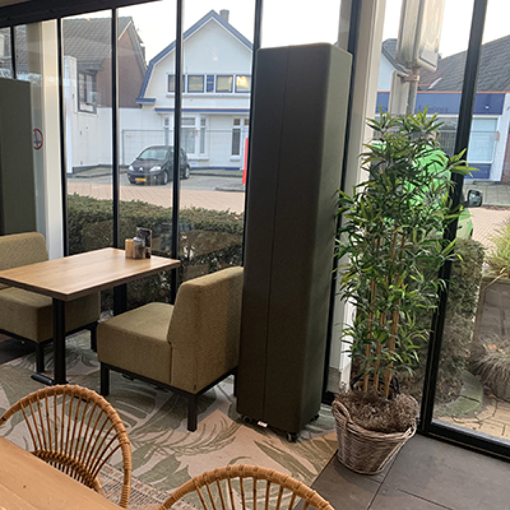 De akoestische pilaar heeft een hoogwaardige afwerking en draagt ook nog een bij aan een goede akoestiek door de goede absorberende eigenschappen van deze zuil.